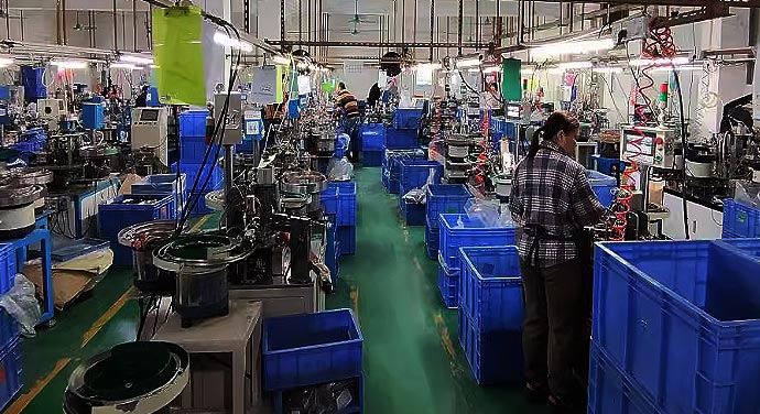 四大核心车间:注塑部(±0.02mm精度)/五金部(日产200万冲压件)/自动化研发部(定制装配设备)/实验室(32台检测仪器)